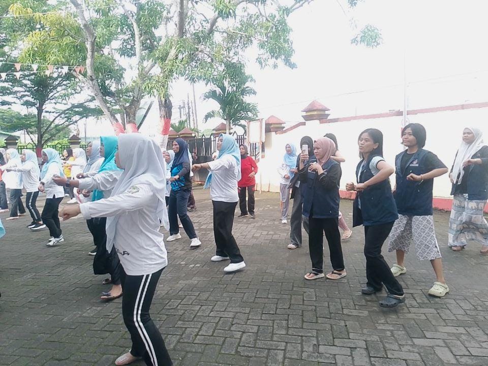 Kegiatan senam bersama yang diikuti oleh warga sebagai upaya meningkatkan kesehatan dan kebugaran jasmani.