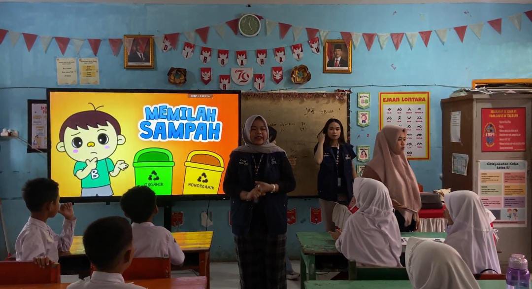 Kegiatan edukasi lingkungan kepada siswa sekolah dasar mengenai pemilahan sampah organik dan non-organik guna menumbuhkan kesadaran menjaga kebersihan sejak usia dini.